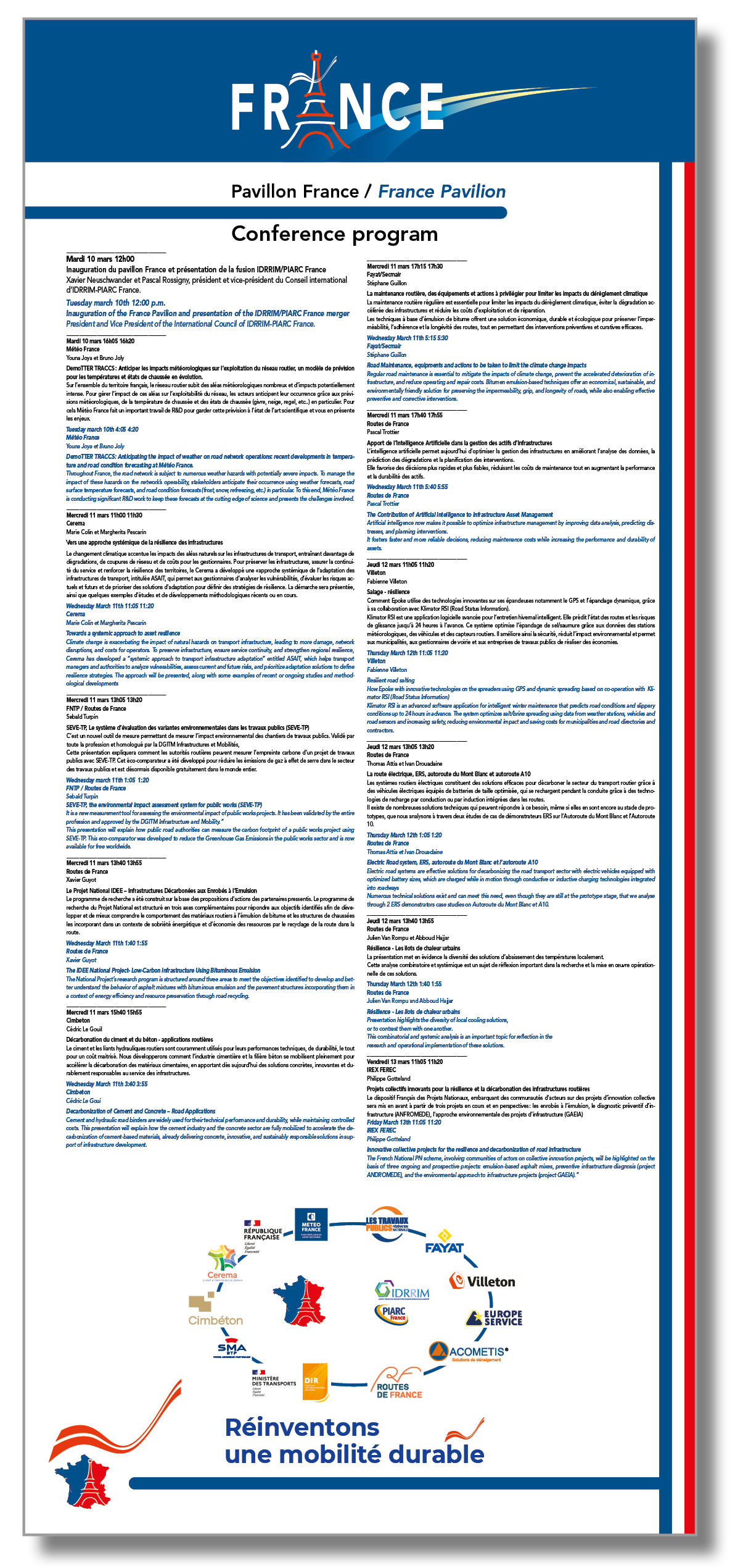 Fort du succès rencontré lors des éditions précédentes, l'IDRRIM-PIARC France a mis en place un Pavillon France au sein de l'espace d'exposition du XVIIe Congrès Mondial de la Viabilité Hivernale, de la résilience et de la décarbonation de la route qui s'est tenu à Chambéry du 10 au 13 mars 2026.