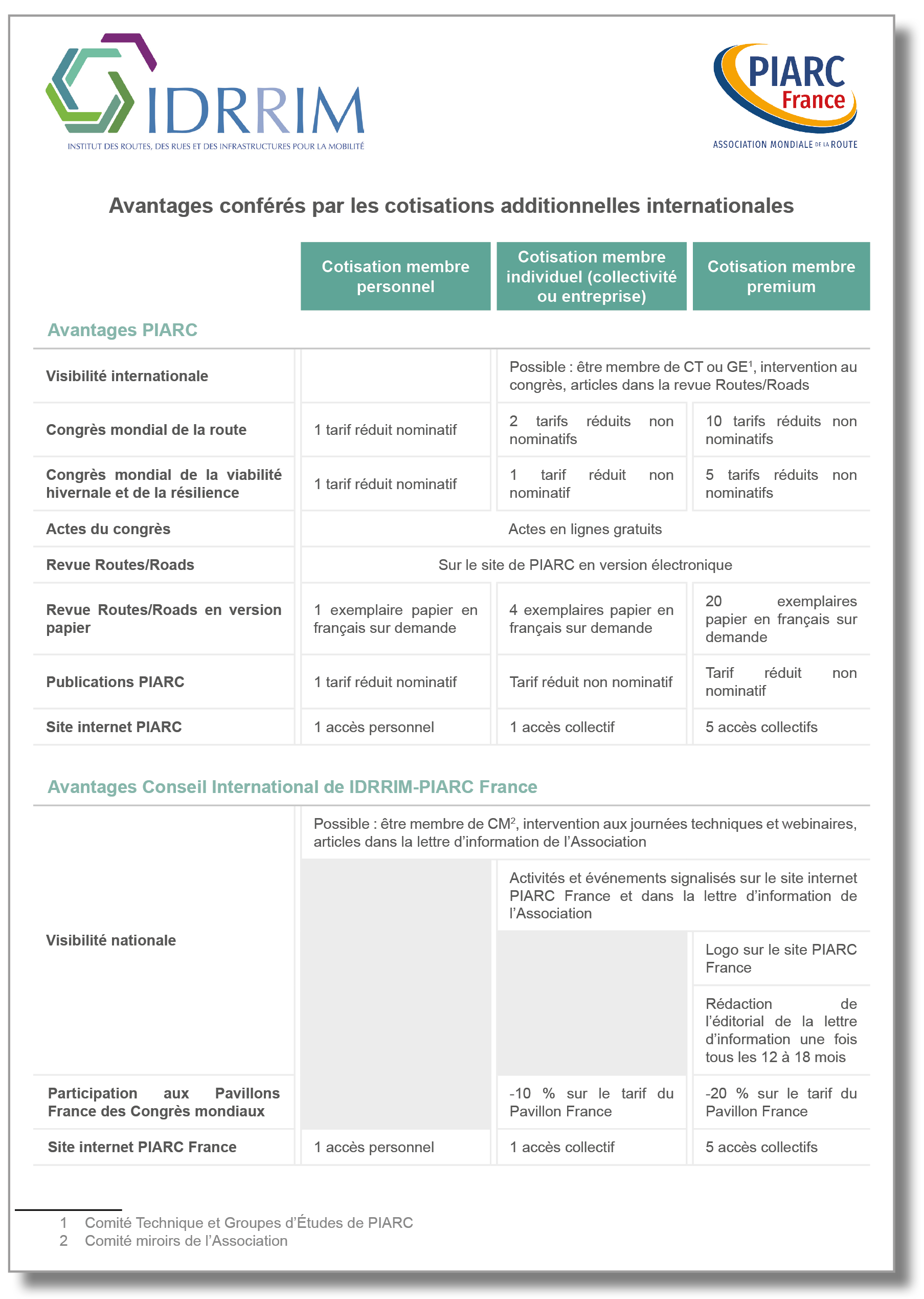 - Rester connecté : accédez aux informations et événements du secteur, recevez les publications et la lettre d’information de l’Institut, bénéficiez d’un contact privilégié avec l’équipe de l’IDRRIM-PIARC France.