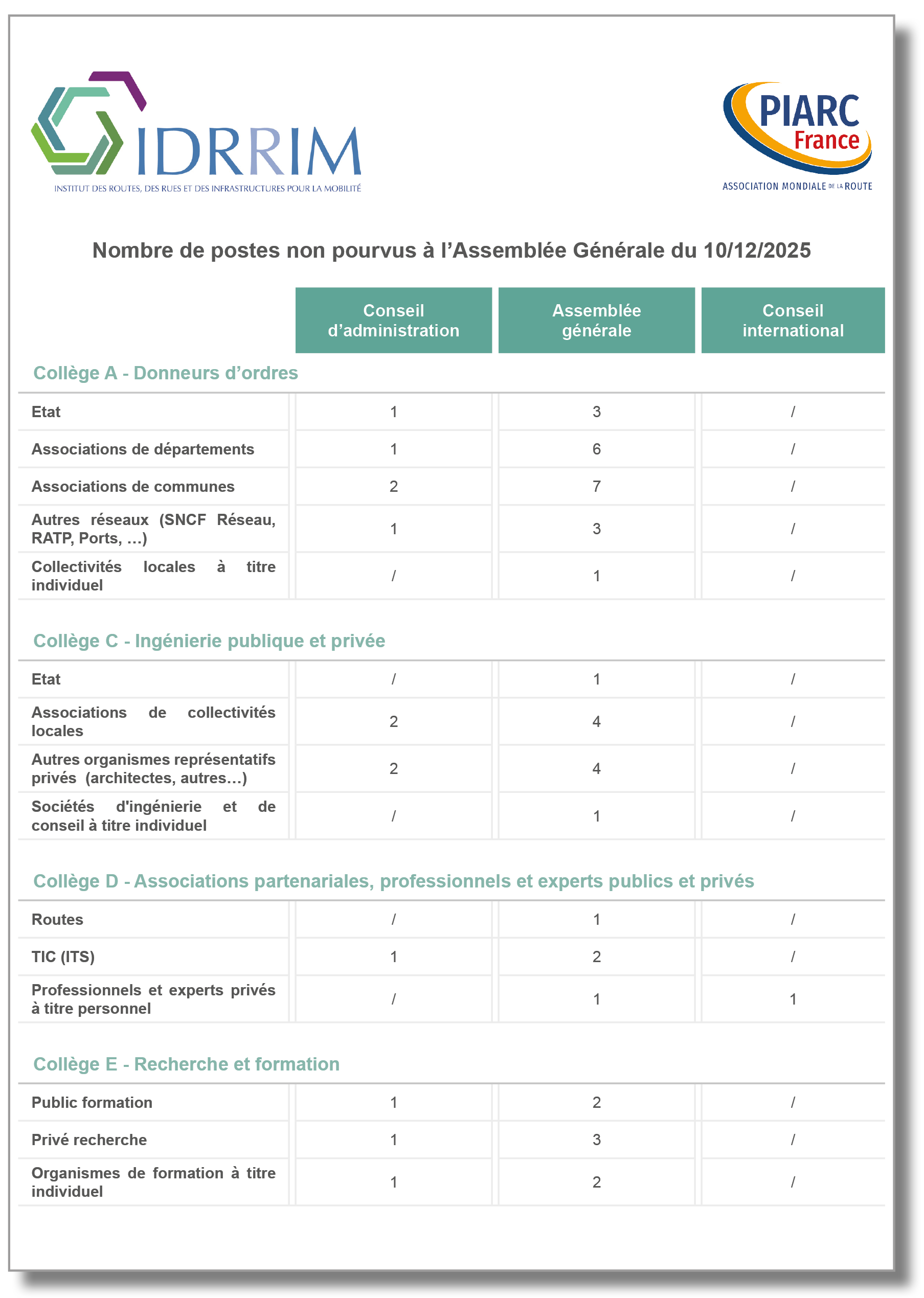 Instances Statutaires IDRRIM-PIARC France (CA & AG)